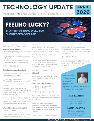 Welcome to our Technology Update Newsletter. This newsletter will be published every month and will contain insider tips to make your business run faster, easier, and more profitably, as well as Tek Tips for home and business, and more…